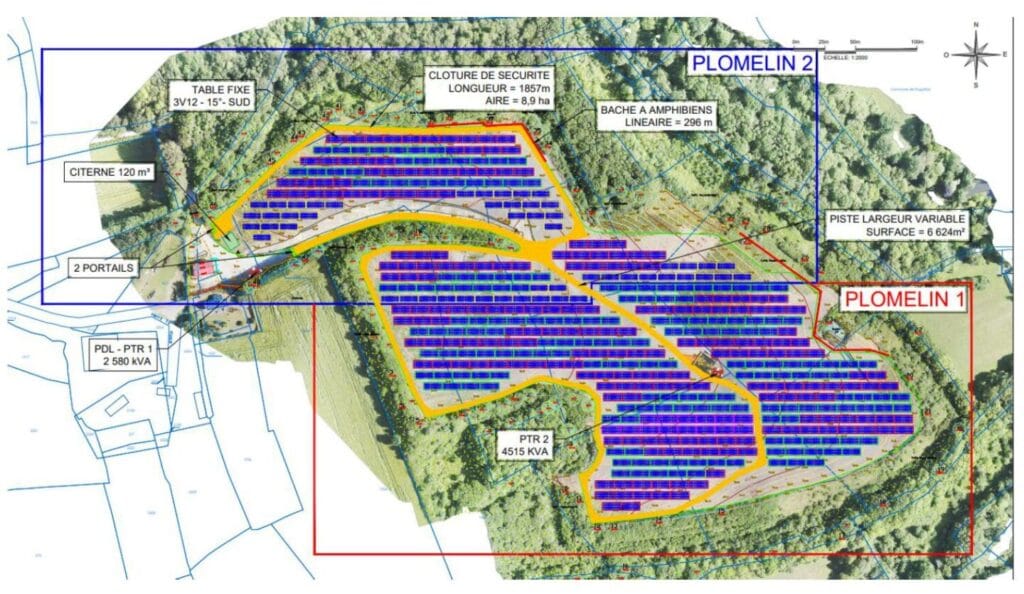 Plusieurs projets d’envergure ont vu le jour dans le Finistère, illustrant la dynamique locale en matière de photovoltaïque. Par exemple, la centrale solaire de Plomelin 1 et 2 d’une puissance globale de 2 775 KWc.